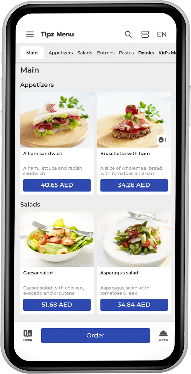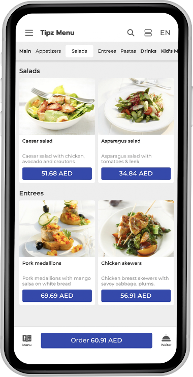 Cu Tipz.menu, poți vedea meniuri, selecta produse, comanda și