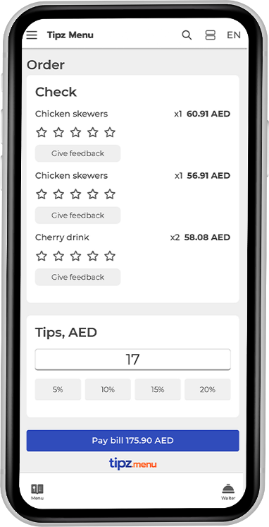 Tipz.menu îți permite să plătești comenzile direct de pe